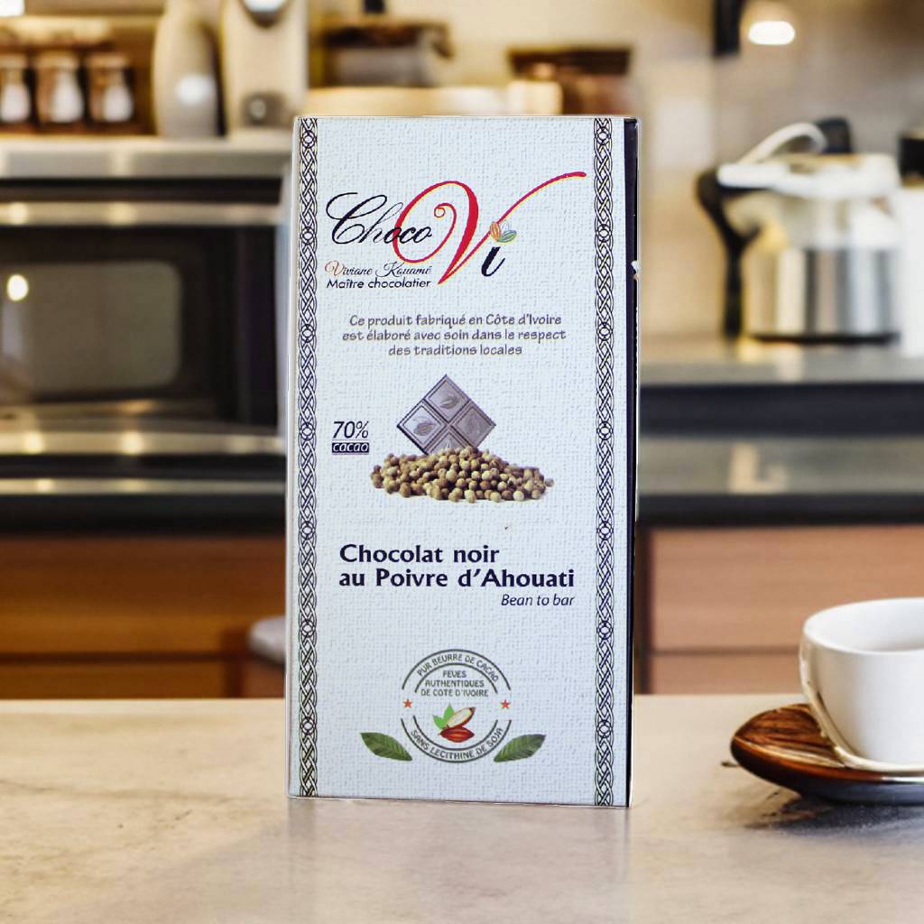 Dive into the enchanting world of Ivorian cocoa, celebrated for its exceptional quality and unique flavors. We invite you to explore a wide range of handcrafted chocolates, lovingly created with expertise by our Master Chocolatier, Viviane KOUAME. Each chocolate is the perfect expression of ancestral know-how, blending modern mastery with respect for traditional techniques. Every bar, every praline is a true work of art, designed to delight your taste buds.
